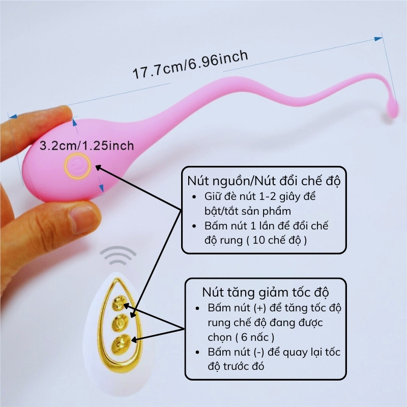 - Chức năng: 10 chế độ rung khác nhau, có thể tăng tốc độ rung của chế độ đã chọn (6 nấc), điều khiển trực tiếp và từ xa.